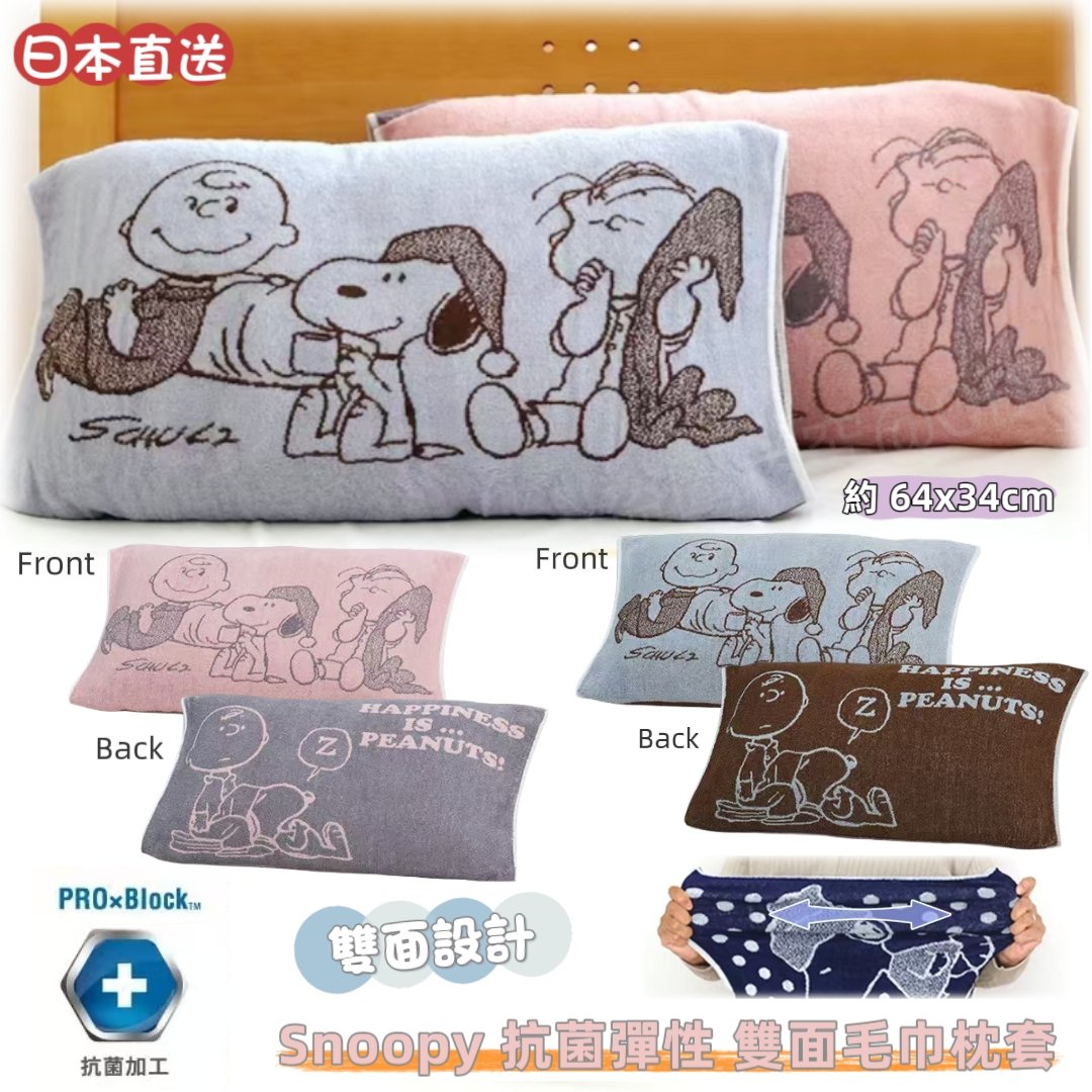 日本直送 Snoopy 抗菌彈性雙面毛巾枕套